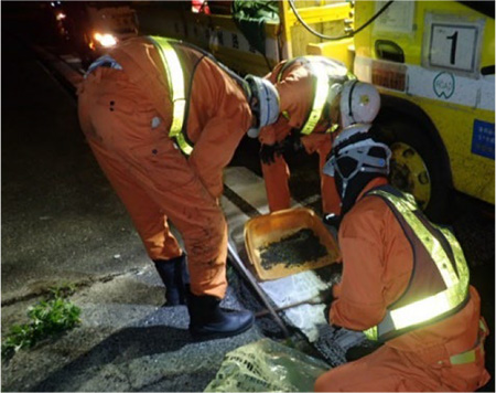 道路附属物等を常時良好な状態に保つためにETC設備点検、清掃作業、植栽作業および事故復旧作業等を行います。